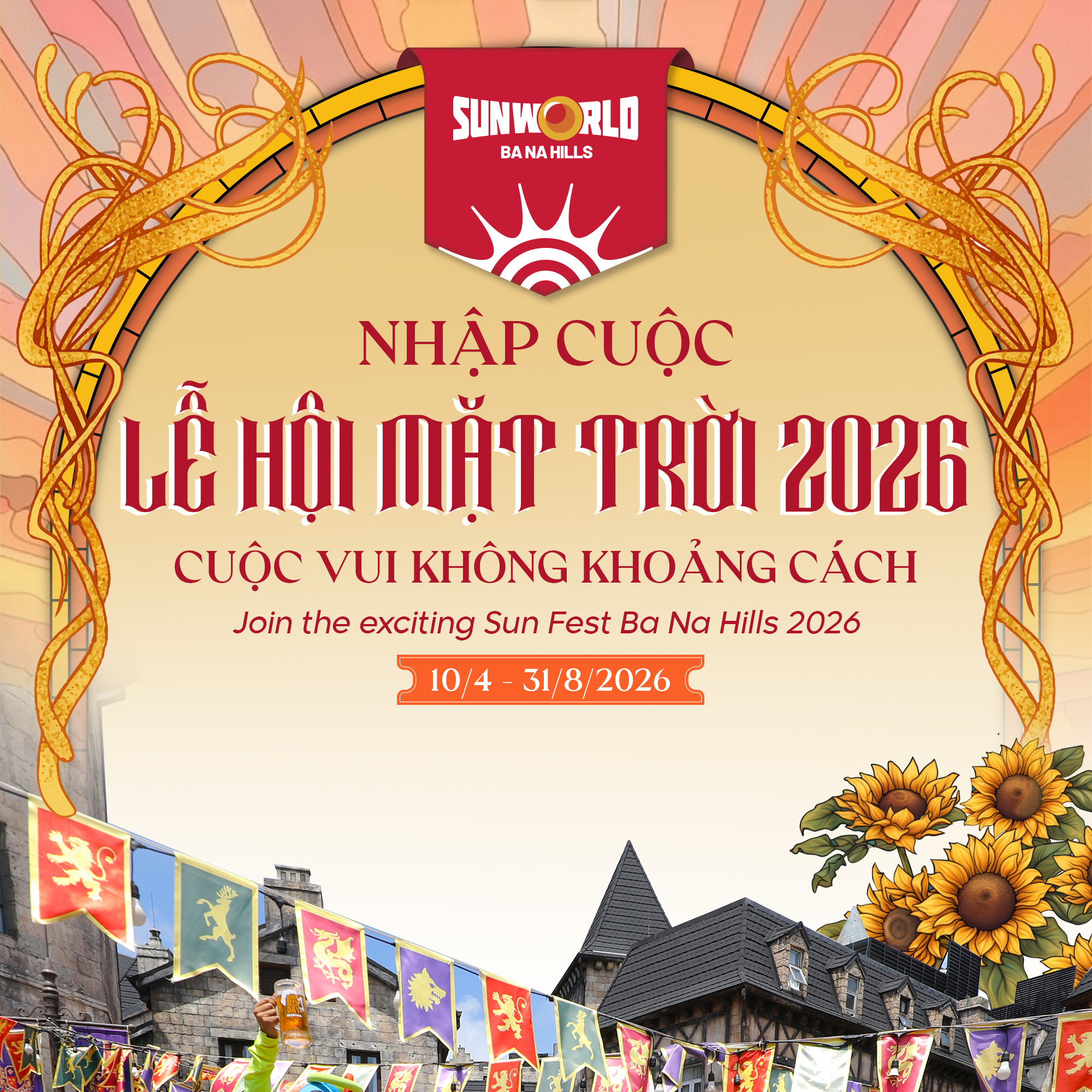 Ý nghĩa của LỄ HỘI MẶT TRỜI BÀ NÀ không nằm ở quy mô, mà ở cách chúng tôi xây dựng những "hành trình cảm xúc" đa lớp: từ hoạt động biểu diễn ngoài trời, show nghệ thuật nhập vai, đến ẩm thực, bia thủ công và chuỗi những trải nghiệm văn hóa mang màu sắc xuyên Á – Âu. Tại mỗi góc nhỏ Làng Pháp, quảng trường hay mái vòm rực rỡ, bạn sẽ luôn bắt gặp tiếng nhạc, tiếng cười và cả những màn trình diễn nghệ thuật bất ngờ.